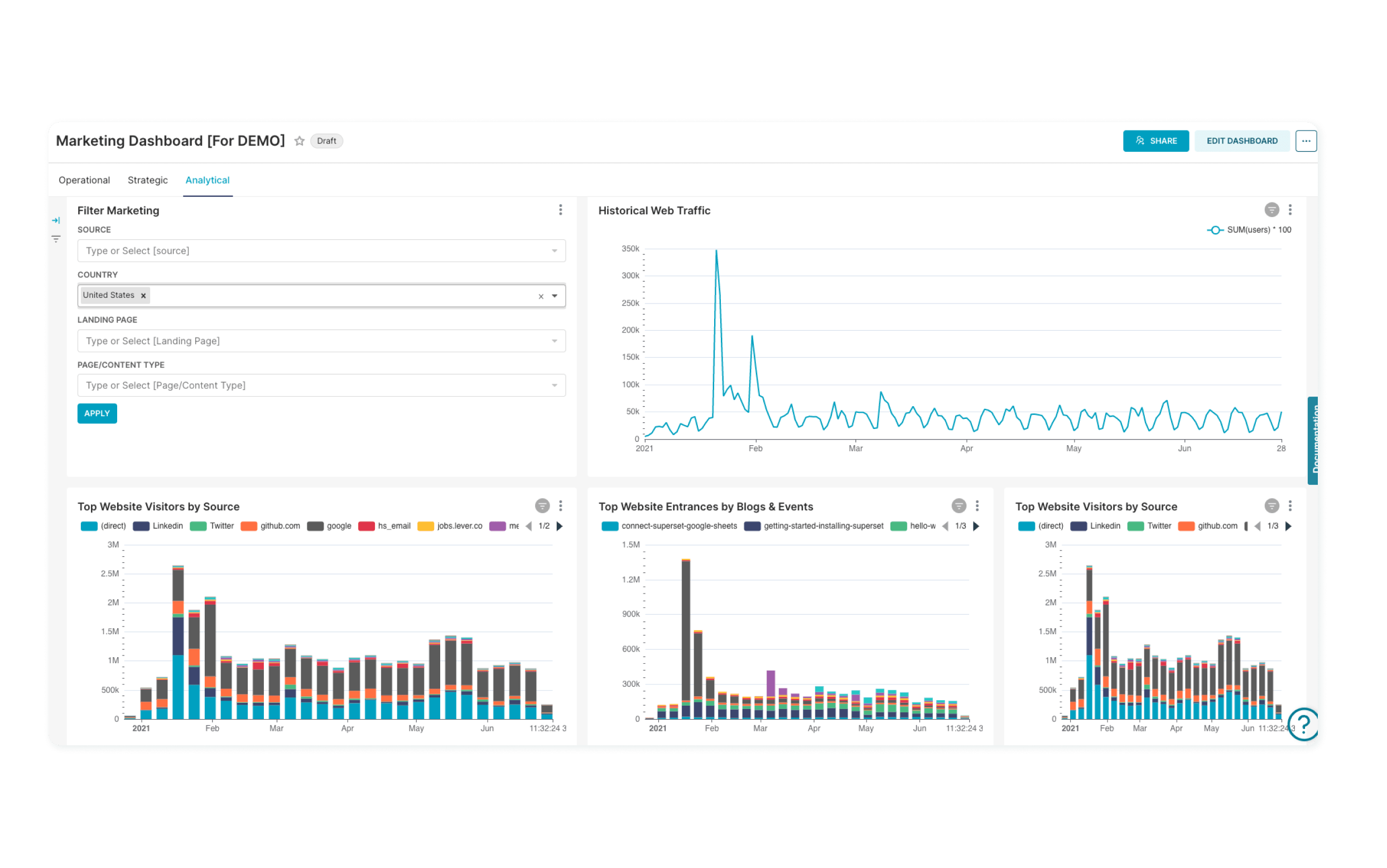 Give everyone in your organization access to their data without taking them out of their daily workflows. Preset makes it possible to embed an entire dashboard or a single chart in a home-grown application with full brand and visual control.